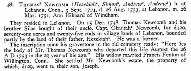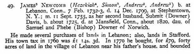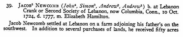 | 9. | Simon Newcomb | c. 1705 Edgartown | Hannah Carter . Jerusha Lothrop 17 Nov 1740 Lebanon, CT . Jane Lothrop (sister of Jerusha) c. 1750 |