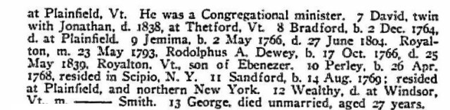 Ebenezer was a farmer, lived in Mansfield, (Conn.) a few years, then in New Fairfield, Conn., then in Newtown, Sussex Co., N.J., and about 1765-6 removed to Shaftsbury, VT. The events of the War of the Revolution sent him to Canada West, where he spent the evening of his life, with his companion and five children near him, at Cornwall and Johnstown.