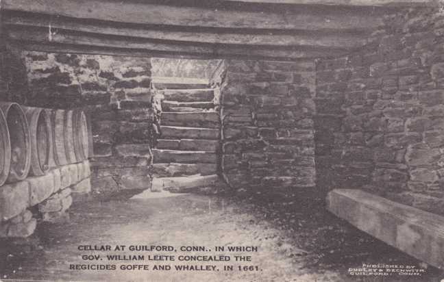The two fled for New Haven, Connecticut when their safety was compromised, where John Dixwell, also condemned as a regicide, was living under an assumed name. They were housed by Rev. John Davenport. After a reward was offered for their arrest, they pretended to flee to New York, but instead returned by a roundabout way to New Haven. In May, the Royal order for their arrest reached Boston, and was sent by the Governor to William Leete, Governor of the New Haven Colony, residing at Guilford. Leete delayed the King’s messengers, allowing Goffe and Whalley to disappear. They spent much of the summer in Judges’ Cave at West Rock. Whalley left New Haven for Hadley, Massachusetts. In Hadley he (some sources say both men journeyed to Hadley) found shelter in the home of Reverend John Russell, who had grown up in Cambridge and graduated from Harvard College in 1645. Every attempt by the English government to procure his arrest failed. He was alive, but in poor health, in 1674, and probably did not live long afterwards.