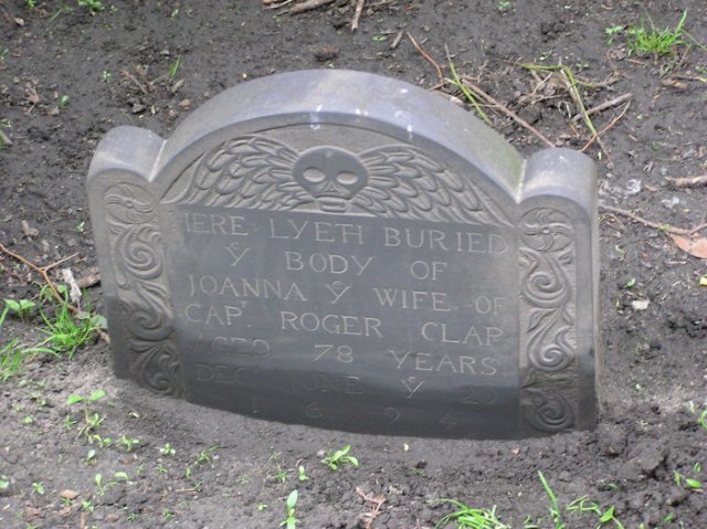 Joanna’s husband Roger Clapp was born 6 Apr 1609 in Salcombe Regis, Devon, England. His parents were William Clapp and Johan Channon. Roger died 2 Feb 1691 in Boston, Suffolk, Mass.