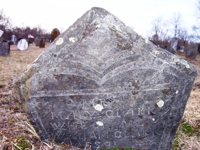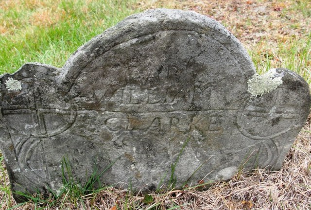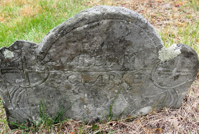 Mary Smith Clark Headstone – Most of the stones in the cemetery are illegible but her foot stone is tilted forward and you can still read Mary Clark. Her grave is right next to her husband Capt William Clark Jr.