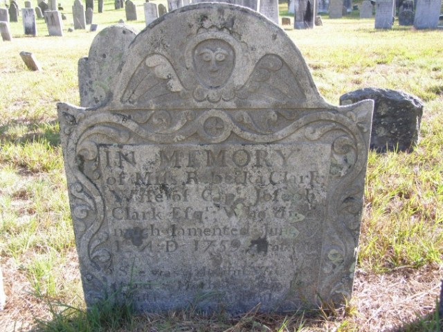‘Here lies ye body of Lieutenant Timothy Clark, a man prudent peaceable, charitable, pious and useful in his life. beloved while he lived, lamented when he died. He departed this life ye calm and peaceful hope of life eternal July 12, 1752, in the fifty-seventh year of his age.’