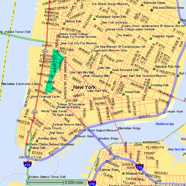 See a copy of “Anneke Jans Bogardus and Her Farm”, a 14-page article—with pictures—which appeared in the May, 1885, issue of Harper’s New Monthly Magazine. In particular, page 837 shows a picture of Anneke’s farm looking south, page 842 shows the farm superimposed on a 1890s map of Manhattan.