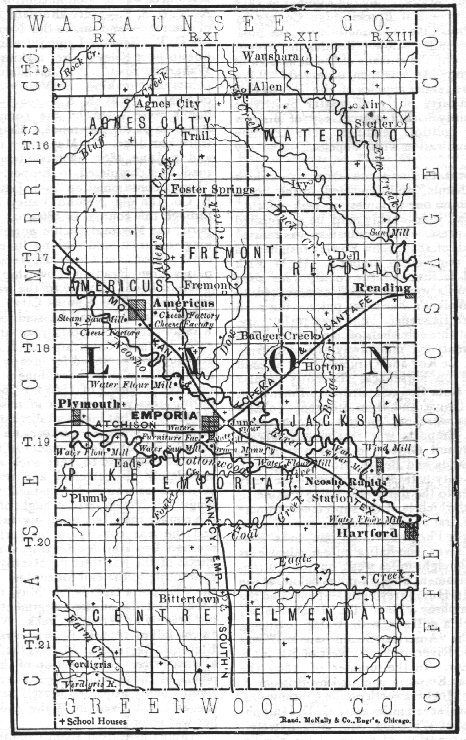 Lyon County, Kansas 1883 from William G. Cutler’s History of the State of Kansas