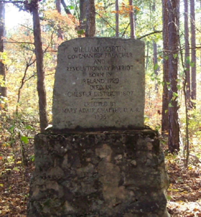 In 1750 Presbyterians from Octoraro, Virginia, and North Carolina, came to South Carolina and settled at Rocky Creek, Chester County. By 1755 Irish immigrants, many of them Covenanters, began arriving. Various groups (Associate, Covenanter, Burgher, Anti-Burgher, Seceders) formed the “Catholic” (meaning a union of various groups of Presbyterians) church on Rocky Mount Road, 15 miles southeast of Chester. In 1770 Covenanters began holding society meetings and wrote to Ireland for a minister. Reverend William Martin answered the call in 1772.