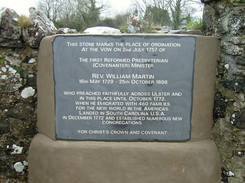 On Friday June 29, 2007 a large crowd gathered at the Shanaghy and Vow Road junction to mark the 250th anniversary of the ordination of Rev William Martin. Rev Martin was the first Covenanter (Reformed Presbyterian) clergyman to be ordained anywhere in Ireland and this was not the only significant mark he made in history.