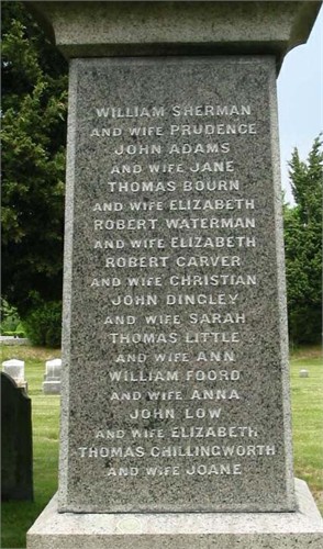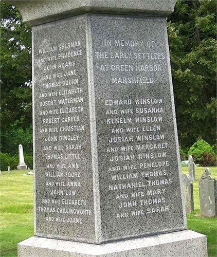 Josiah and Margaret (Bourne) Winslow are listed on the Marshfield founder’s monument.