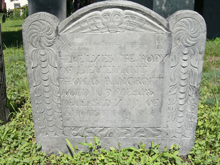 Lt Thomas Bancroft Headstone — Old Burying Ground Wakefield Middlesex County Mass