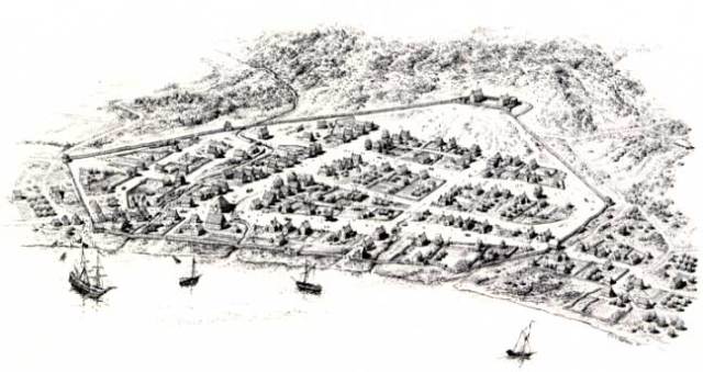 By the 1680s, Jacobus had married Catharina Van Benthuysen and was living in Albany. By 1700, eight children had been baptized at the Albany Dutch church where both parents were members and occasional baptism sponsors. The fledgling community granted a city charter in 1686 was in reality a town of about 120 buildings – clustered together city-style and encircled by a tall, wooden stockade. Seventeenth century Albany had four principal public buildings. The city hall was located near the water on Court Street; the Dutch Reformed Church set in the middle of the city’s main intersection; a smaller Lutheran Churchwhich often was without a pastor; and a more imposing wooden fort located up the hillside and overlooking the community.