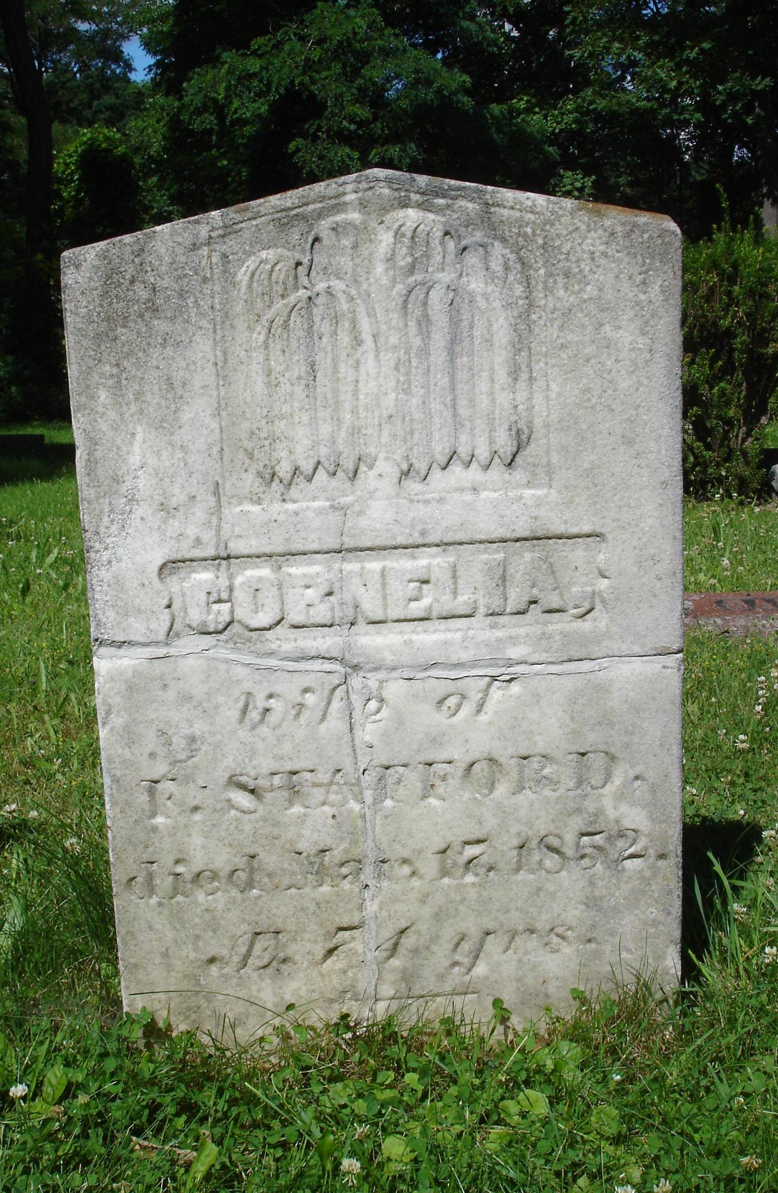 Cornelia’s second husband Frederick Stafford was born about 1773 in New Hampshire. His parents were Abel Stafford (b. 1748 – 1841) and Rebecca Short (b. 1750 – ). Frederick died 29 Sep 1848 and was buried 11 Oct 1848 in St. Peter’s Anglican Church Cemetery in Mississauga, Ontario.
