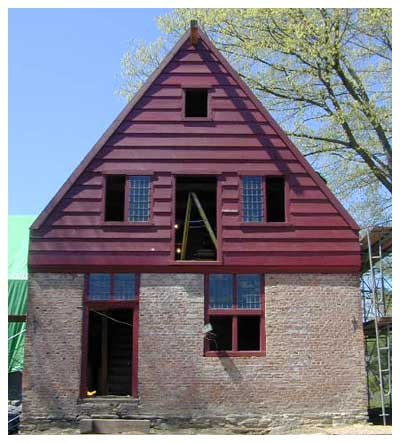 On 9W, about a hundred yards south of the church is a dip where the road goes over the Vloman Kill. There is a blinking light there. Take a right and you are on Creble Rd. About 100 yard up on the left, some old homes begin. 20 years ago, several of them were in rather poor shape. Another Winne house off Creble Road adjacent to the Vlomankill (shown as “Old Peter Winne on the Bleecker map of 1767) was under restoration in 2003 by a private owner and can be easily seen from Creble Road near Route 9W. The whole valley of the Vlomankill seems to have been inhabited by Winnes early on. The Vloman Kill flows not far behind the row of houses.
