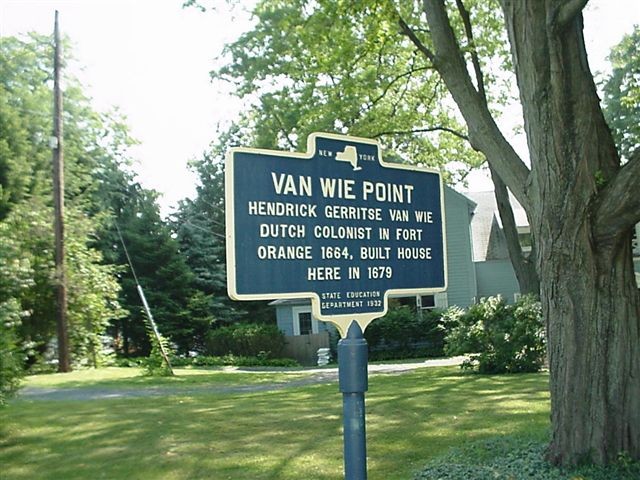 ‘Hendrick Gerritsen Van Wie occupied a farm called Domine’s Hoeck, now known as Van Wie’s Point, as early as May 1, 1672, being charged from that date until 1 May 1, 1675 with rent of f50 per year, for Dominees Hoeckje and Bevers Eylandt.’  He built a house in Beverwyck (Albany)  in 1679 on the Town Road at Van Wie’s Point.  Van Wies Point Road is now right on the Hudson near Glenmont [not Glenmont Street] and Bethelhem, NY.