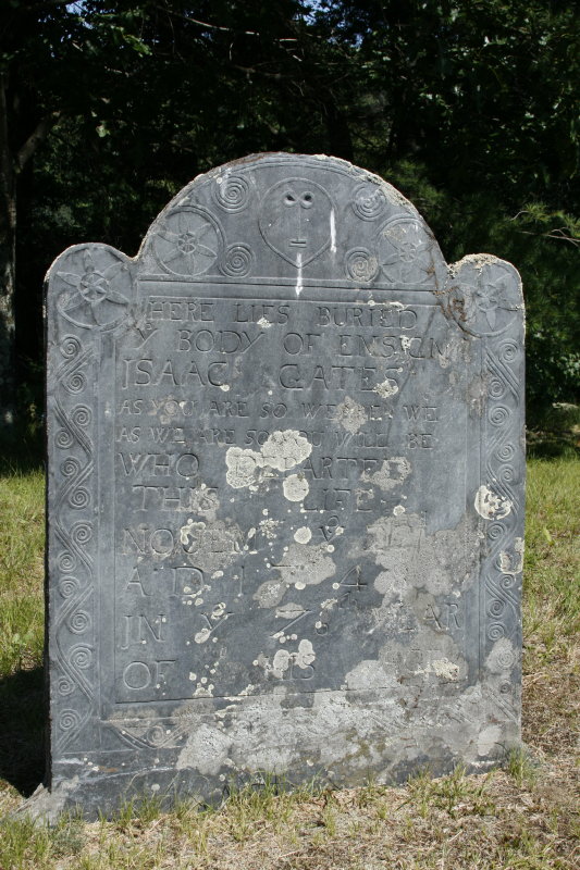 Isaac Gates – Lower Village Cemetery, Stow, Middlesex, Mass – “Here lies buried Y body of Ensign Isaac Gates. As you are, so we are, as we are so you will be who departed this life Nov 22nd AD 1748 in Ye 76th year of his age”