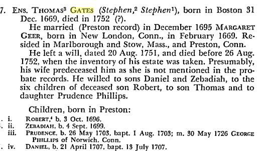 | 1. | Stephen GATES III | 17 Jul 1665 Lancaster, Mass. |