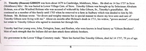 The above claim that Timothy was raised by Selectman Abraham Holman is very surprising given the bad blood between the Gibson and Holman families.