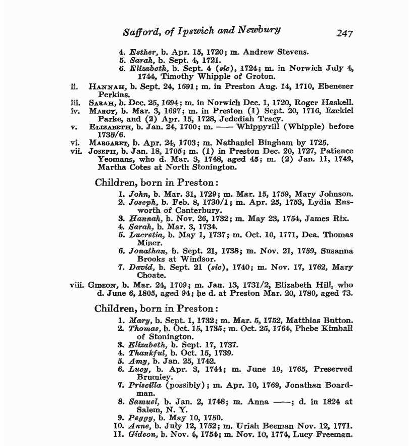 | 2. | Hannah SAFFORD | 24 Sep 1691 Preston,New London,CT | Ebenezer PERKINS 14 Aug 1710 in Preston, CT |