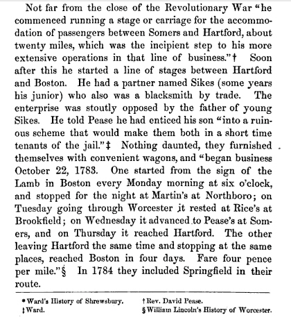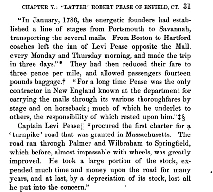 More about Levi Pease's Stage from A genealogical and historical record of the descendants of John Pease, Senior by Rev. David Pease and Austin Pease 1869