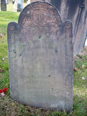 Elizabeth Warner Pease 1683-1783 Enfield Street Cemetery – In Memory of Mrs Elizabeth, Relict of Mr Samuel Pease who departed this life Nov 28th 1783 in the 100th year of her age. AS in the fair morn the richest flowers bloom. So virtue smiles beyond the silent tomb. If virtue now deserves a passing tear Then find a kind traveler and drop it here.