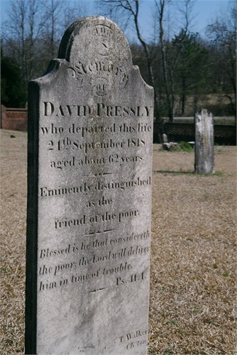 i. Samuel P. Pressly, b. 25 Sep 1799 in Cedar Springs, Abbeville, South Carolina; d. 29 Sep 1839 in Athens, Georgia; m. Jane West Todd (c. 1797 in Ireland or 1805 Georgia – d. 01 Aug 1875 in Laurensville, South Carolina); Her parents were Andrew Todd and Jane West.