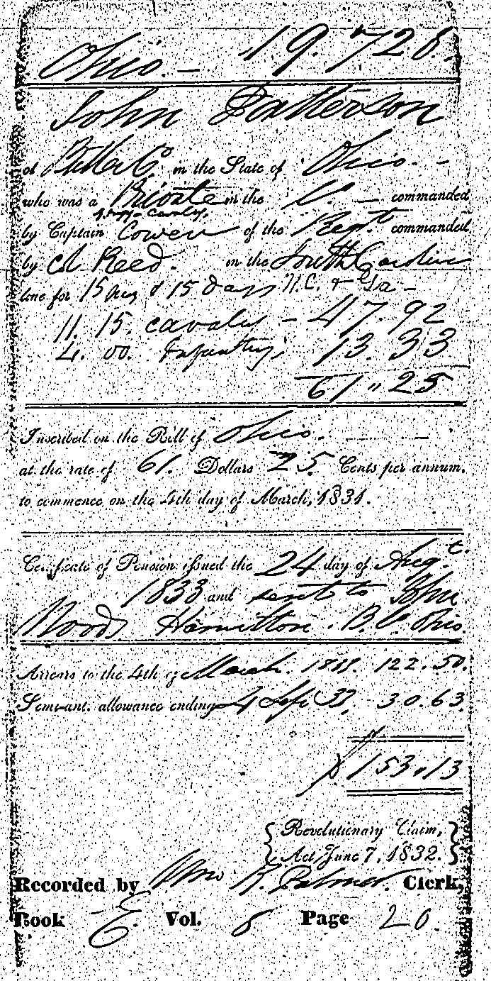Son John was a soldier in the Revolutionary War, serving as a substitute for his father in August 1778 when he was just 15 1/2 years old; he saw service in the Carolinas in 1778, 1780 and 1781 and was discharged March 1781. He was in both the infantry and cavalry. I found his long 1832 pension petition detailing his service. John also became a church elder in Preble, Ohio.