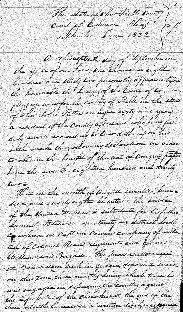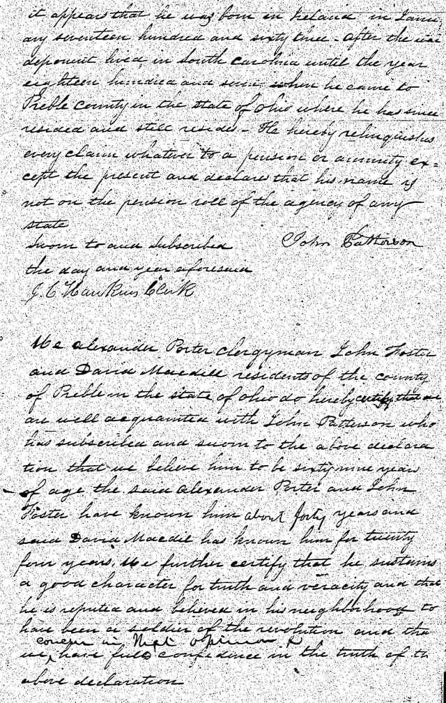 | 4. | Samuel PATTERSON Jr. | 17 Oct 1765 County Down, Ireland. | Agnes [__?__] Abbeville District, South Carolina before 1792 . Rosannah Sprowl 28 Dec 1814 Preble County, Ohio |