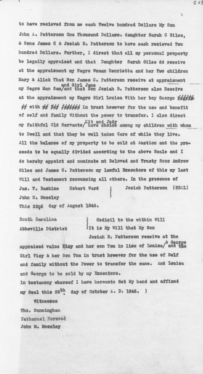 Perhaps you should look into all the slaves they owned… I’ve done quite some research of my own and found that my mothers great grandfather was a descendant and a slave of one of these Patterson’s, he was listed on the census as a Mulatto farmer (guess he was free), his mother not so lucky a slave. African Americans Patterson’s from Edgefield, Sulada, Aiken….. I tell you, always leave out that part of history. Plenty of African descendants to go around.