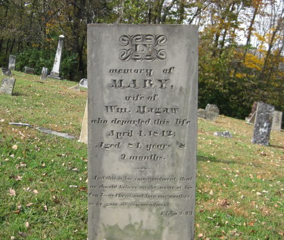 vi. Margaret McGaw b. 4 Jul 1790 in Abbeville, Abbeville, SC; d. 21 Feb 1838, Hopewell Cemetery, Morning Sun, Preble County, Ohio; m. 2 Nov 1815 in Preble, Ohio to Thomas Pinkerton (b. 9 Nov 1793 in Abbeville, SC – d. 22 Mar 1873 in Preble, Ohio) His parents were John Pinkerton (1768 – 1852) and Mary Anderson (1768 – 1837).; After Margaret died, Thomas married Margaret Sloan (b. 1796 South Carolina – d. 13 Jun 1872 Preble, Ohio)