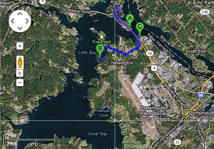 Newington Map – A = Hilton Point B= Dumpling Cove C = Bloody Point