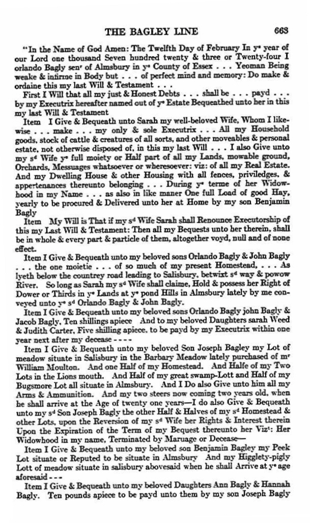 I’m a 7th great granddaughter of Orlando Bagley. Just wanted to send my apologies.