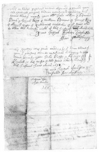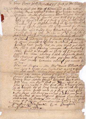 Susannah Martin Death Warrant - Orlando Bagley was the constable who arrested Susannah Martin in the Salem Witch Trials