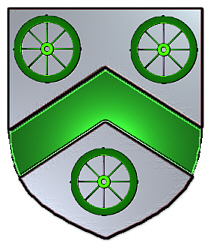 Thomas Carter Coat of Arms – Since Thomas arrived as an indentured servant, I picked the silver shield with a green chevron between three green cart wheels. rather than the blue shield with two gold lions combatant.