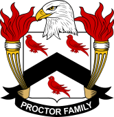 Alternatively, the Proctor Coat of Arms is three red crosses or birds with a red chevron