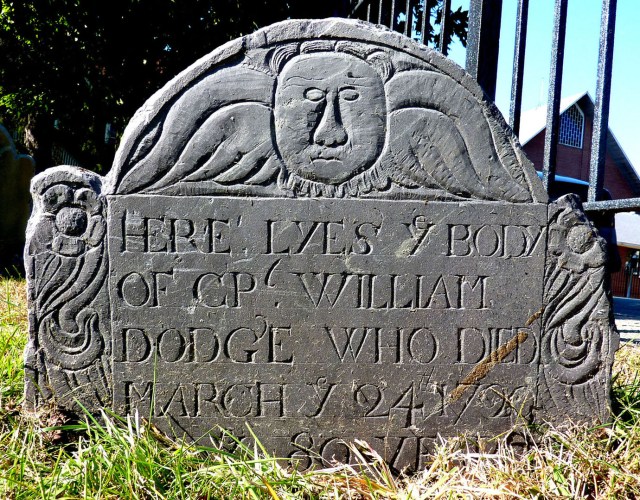Sarah’s husband William Dodge was born 19 Sep 1640 in Salem, Essex, Mass. His parents were William Dodge and Elizabeth [__?__]. After Sarah died, he married 27 Oct 1698 in Marblehead, Essex, Mas. to Mary Creatty (b. 1638 in Beverly, Mass – d. 1 Feb 1702 in Essex, Mass.) Mary was the widow of John Balch who had drowned in 1662 in a violent storm at Beverly Ferry. Willliam died 24 Mar 1720 in Beverly, Essex, Mass.