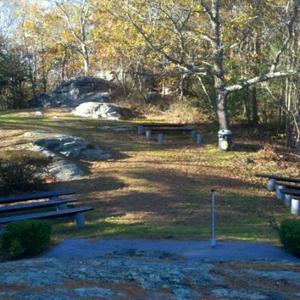 Standing north of the Green area is Meeting House Hill, a cliff of large rocks that is also known as the Meeting House Rocks. It was on this cliff that the village’s second and third meetinghouses were established, with the site used as a lookout point. The memorial on top of the rocks and pathway are cared for by the First Congregational Church.
