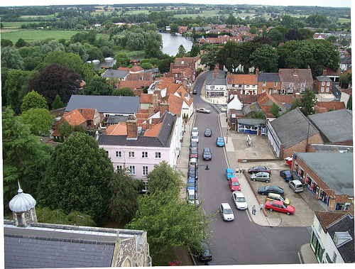 The townscape is dominated by the detached sixteenth-century bell tower (known as the Beccles bell tower) of St Michael’s church. Like the main body of the church, the tower is Perpendicular Gothic in style and is 97 ft tall. The interior of the church was badly damaged by fire in 1586. It has a 13th-century font.  The tower is not attached to the church and at the wrong end of the church as the correct end would be too close to a large cliff.  Local historians believe that the tower was originally intended to have a steeple and spire but after forty years of construction, the Protestant Reformation during the reign of King Henry VIII (and the suppression of Roman Catholic institutions) intervened to bring work to a halt.   It was at this church in 1749 that the mother of Horatio Nelson, Catherine Suckling, married the Reverend Edmund Nelson (a former curate of Beccles).