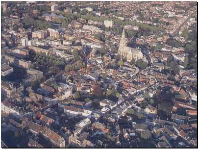 The ruins of Abbey of Saint Bertin in 1850. The abbey had its greatest flourishing from its inception in the 7th century until the 13th century, though it survived until it was shut down at the French Revolution.