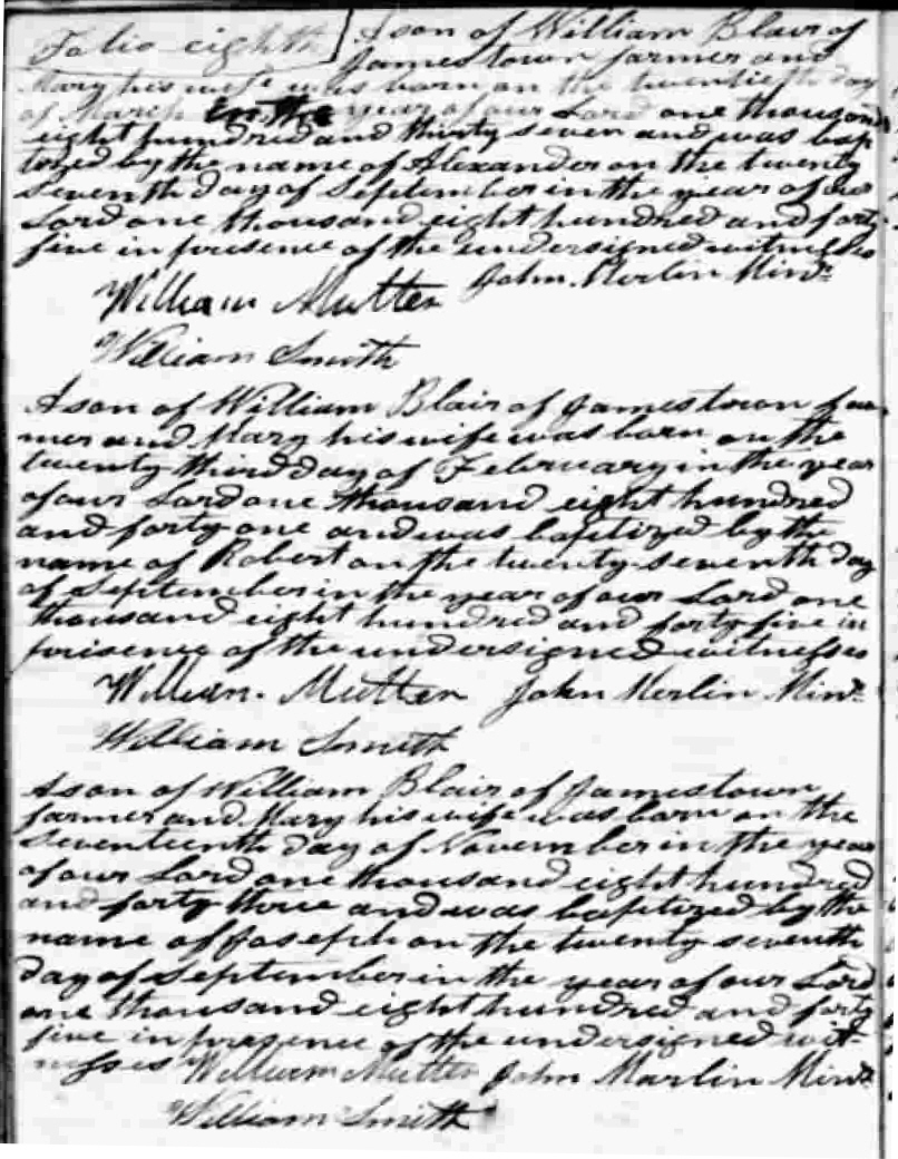 William BLAIR Sr. ( – 1822) was Alex’s 5th Great Grandfather; one of 64 in this generation and the founder of our Blair line in North America.