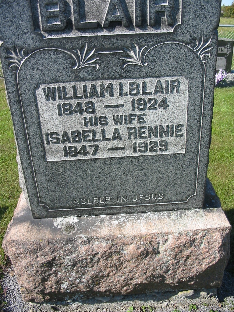 01-18-1929 Isabella Rennie, wife of the late W. I. Blair, died at Rockburn PQ, age 81 years.