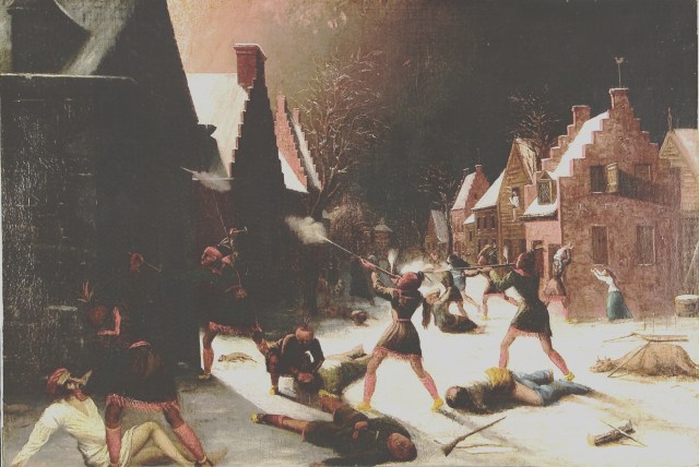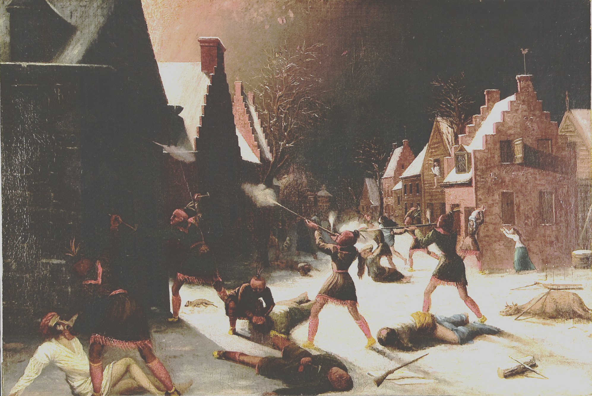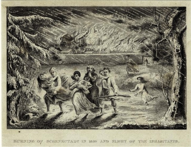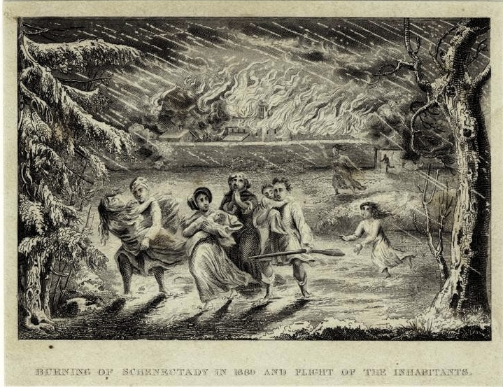 The Schenectady Massacre was a Canadien attack against the village of Schenectady in the colony of New York on 8 February 1690. A party of more than 200 Canadiens and allied Mohawk nationSault and Algonquin warriors attacked the unguarded community, destroying most of the homes, and killing or capturing most of its inhabitants. It was in retaliation to the Lachine massacre, and related to the Beaver Wars in North America and King William’s War between France and England.