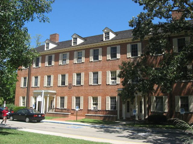 The foundations for Miami University were first laid by an Act of Congress signed by President George Washington, stating that an academy should be located Northwest of the Ohio River in the Miami Valley. At its opening on 1 Nov 1824, there were twenty students and two faculty members in addition to the College President. The curriculum included Greek, Latin, Algebra, Geography, and Roman history. An “English Scientific Department” was begun in 1825 which studied modern languages, applied mathematics, and political economy as training for more practical professions. In 1839 Old Miami reached its enrollment peak, with 250 students from 13 states; only Harvard, Yale, and Dartmouth were larger. By 1873, enrollment had fallen to 87 students and the board of trustees closed the school and leased the campus for a grammar school. The period prior to its closing is referred to as “Old Miami”. The university re-opened in 1885, having paid all of its debts and repaired many of its buildings.