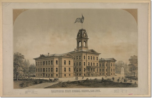 In 1862, by act of the California legislature, Minns’ Evening Normal School became the California State Normal School and graduated 54 women from a three-year program. The school eventually moved to San Jose in 1871 and was given Washington Square Park at Fourth and San Carlos Streets, where the campus remains to this day.