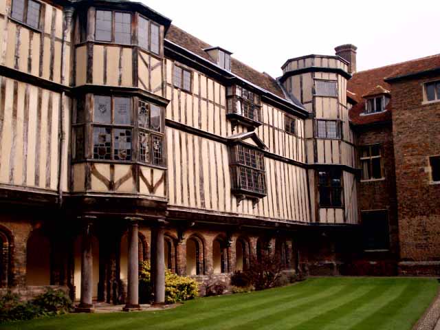 President’s Gallery (app.1540) of Cloister Court shown above, rambling half-timbered building — Queens’ College Cambridge