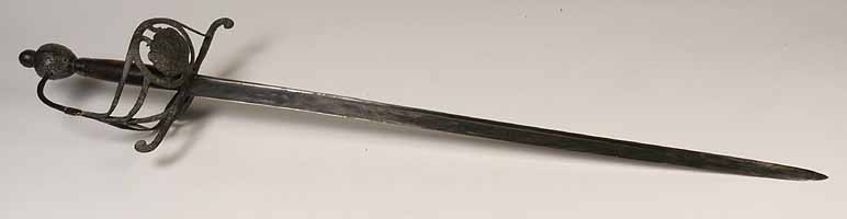 The “Carver sword,” on loan to the Pilgrim Society from the Massachusetts Historical Society, was donated to the Massachusetts Historical Society by Ichabod Shaw of Plymouth in 1795. The decoration and workmanship are typical of English swords of the early 17th century.
