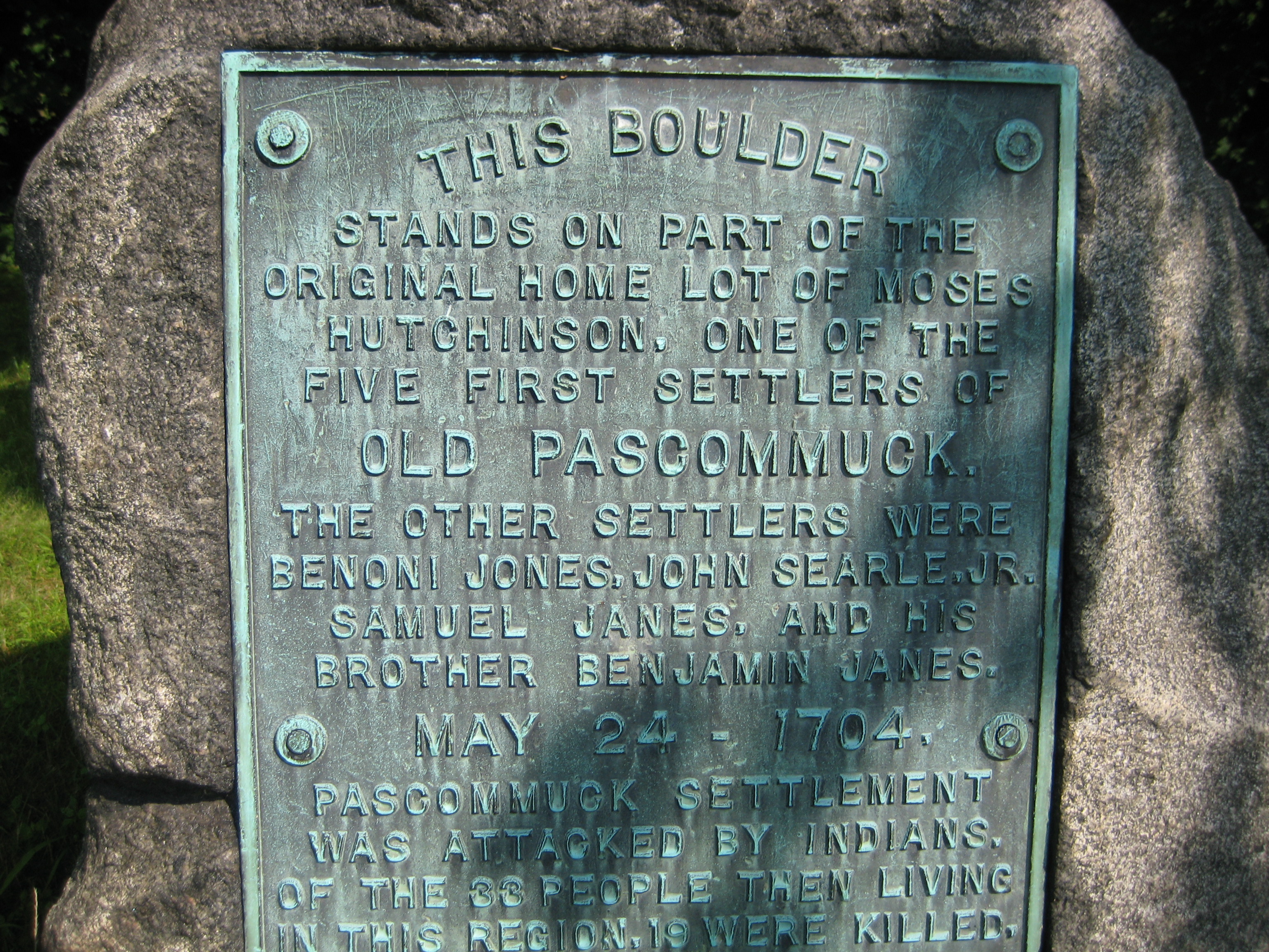 In Easthampton, Mass. (formerly Pascommuck), there stands a boulder recording the 1704 Massacre, in which 19 of the 33 people there were killed. From this account it must be assumed that John (2) Searle, and the rest of his family escaped the attack, or were outside the area chosen by the attackers.