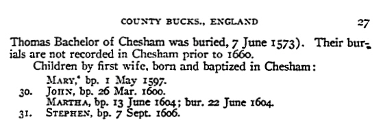 Alice Bachilor was probably the wife of Henry’s cousin of the same name. Alice was born 1569 in Hundridge Chesham, Buckinghamshire, England. Her parents were Thomas Bachelor and Katherine [__?__].
