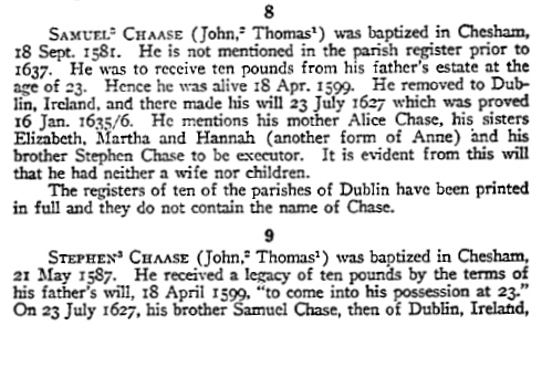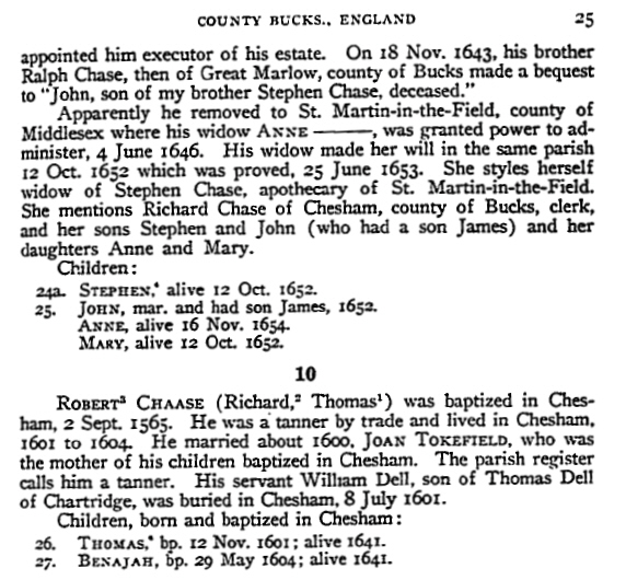 | 1. | Robert Chase | 16 Sep 1565 Hundridge Chesham, Bucks., England |