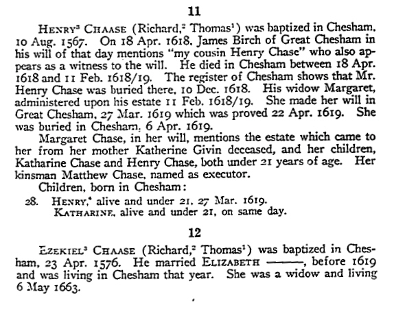 | 4. | Ezekiel Chase | 23 Mar 1576 Hundridge, England |