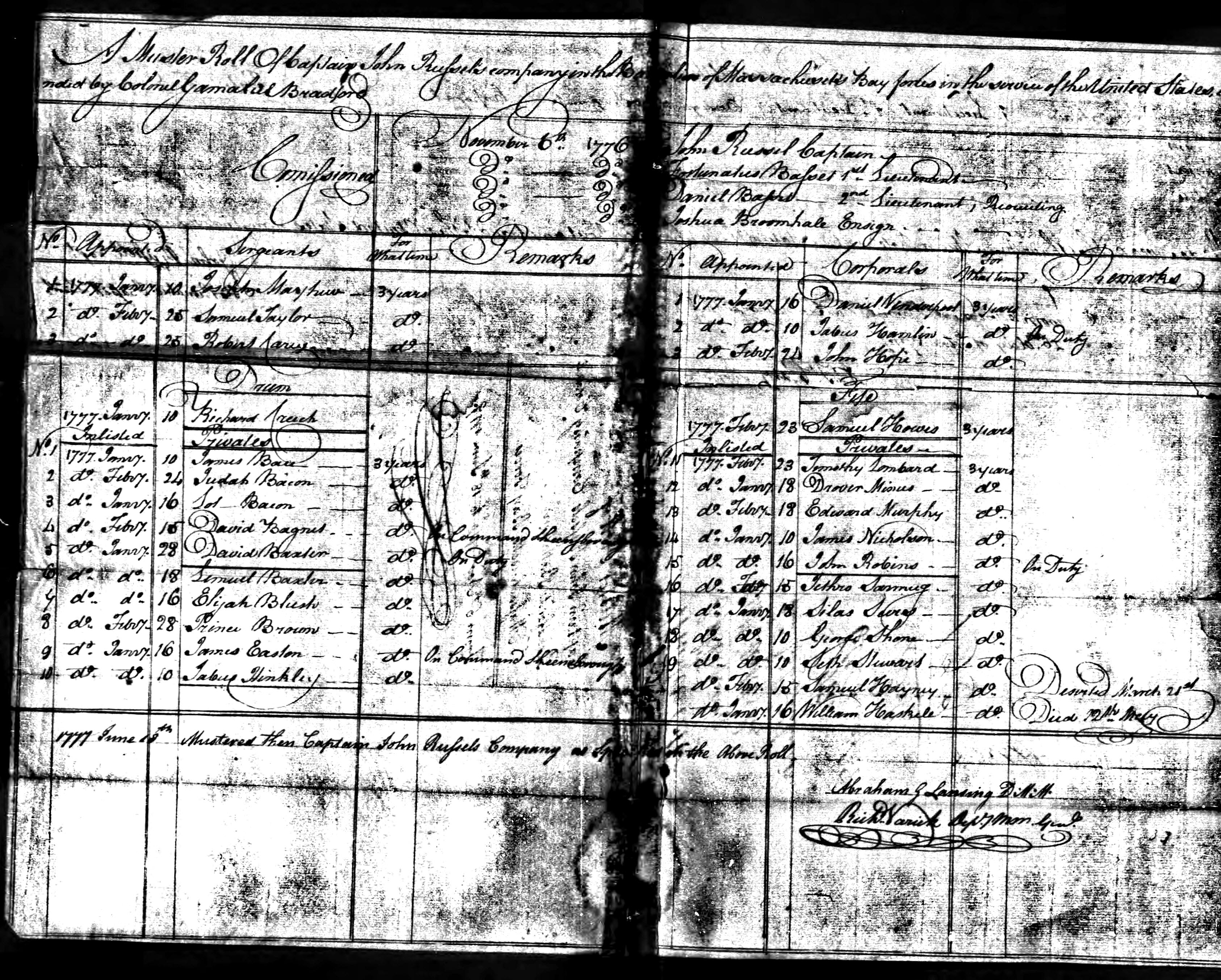 Sgt Samuel Taylor was included on the 18 June 1777 Muster role for Capt John Russell’s company, Colonel Gamaliel Bradford’s 14th Massachusetts Regiment