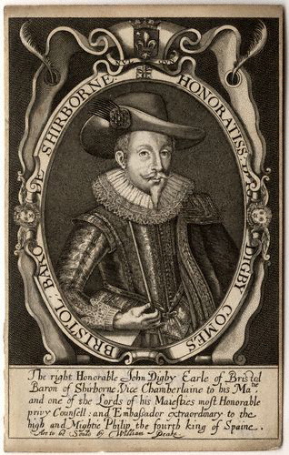 John Digby was the son of Sir George Digby of Coleshill, Warwickshire and Abigail, daughter of Sir Arthur Henningham. He was educated at Magdalene College, Cambridge King James I sent Digby to Madrid as his ambassador to Spain during the early 1610s, and Digby was a leading figure in the unsuccessful Spanish Match, the effort to marry Prince Charles to the Infanta Maria Anna of Spain. Digby was made the scapegoat, recalled and ordered to reside on his estates. Charles after his accession offered Digby his favour if he would admit his fault : Digby, always a stubborn and hot-tempered man, refused. Charles, infuriated, impeached him and sent him to the Tower of London; Digby, undaunted, made counter-charges against the Duke of Buckingham, the prime favourite. His trial never proceeded, although he remained in the Tower until 1628, and the affair seriously damaged the King’s reputation as a man of honor.
