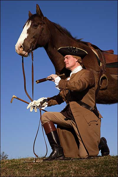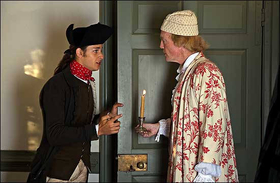 Jack Jouett Warning Thomas Jefferson as he was preparing for breakfast. Jack played by Stuart LilieJefferson by Colonial Williamsburg's Bill Barker